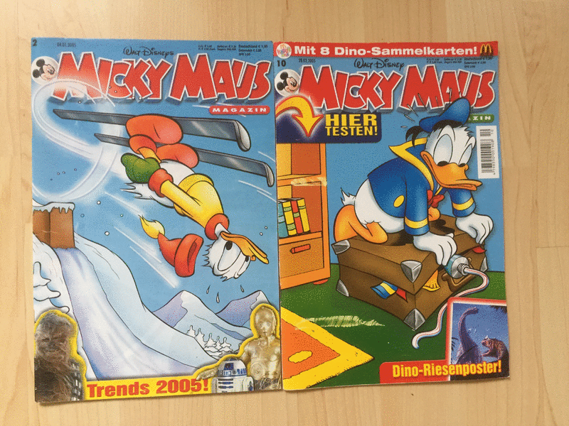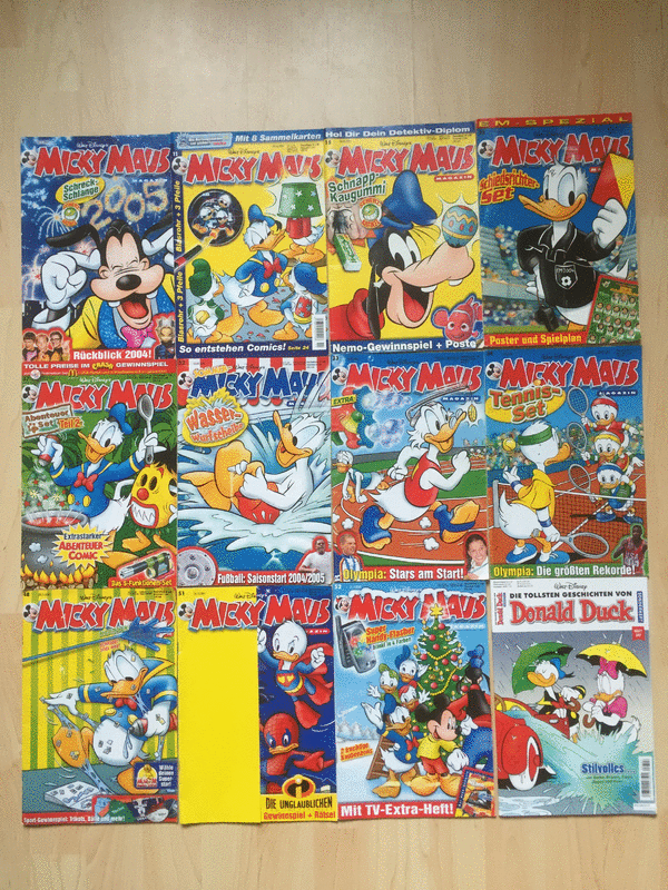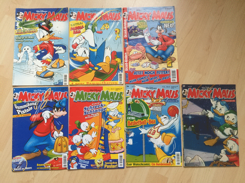 hier kommen 28 Hefte/Bände, z. T. gebundene Ausgabe, eine Micky Maus Comic Rarität ab 1997 bis 2005, die in keiner Sammlung fehlen sollten. Diese Rarität sucht jetzt einen liebevollen Neubesitzer und ist ein tolles Geschenk für einen Sammler oder eine Trophäe für sich selbst. Gut erhaltene Artikel mit altersbedingten Gebrauchsspuren, siehe Fotos, Tierfreier Nichtraucherhaushalt! Privatverkauf, Einzelpreis 3,00€ oder alle zusammen gegen Gebot, Versand ab 2€ bei Kostenübernahme möglich