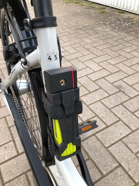 Ein ABUS-Faltschloss (80 cm. lang) ist mit dabei.