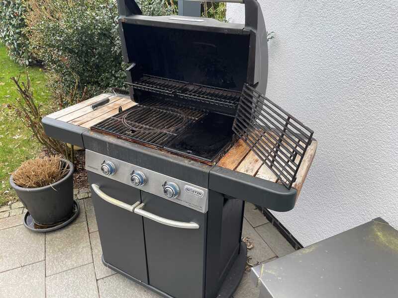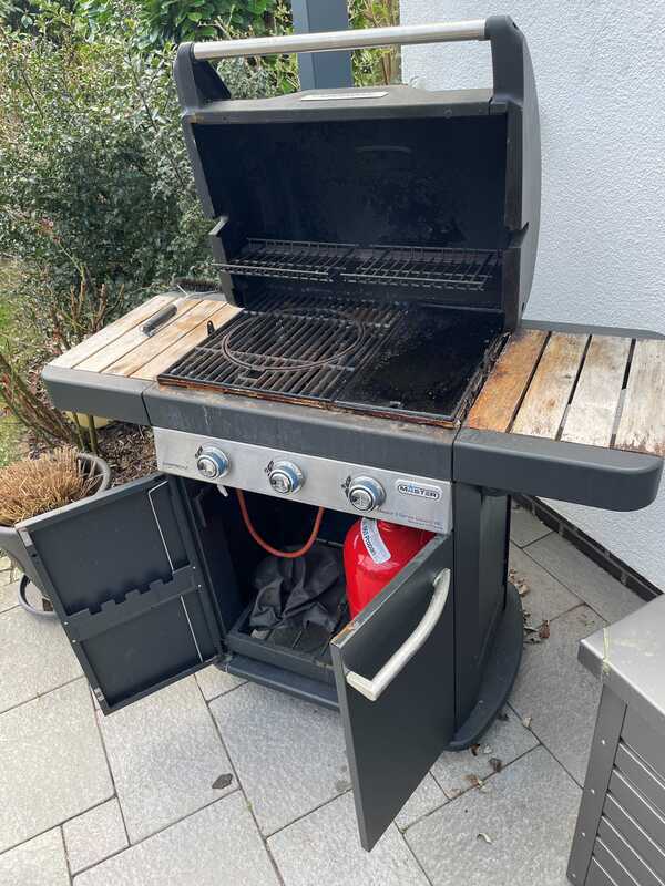 WIr verkaufen unseren gebrauchten Gasgrill. 3-flammig; Gussrost mit extra Planchaplatte; Elektrostart; Ablagen in Holz; rollbar; alles weitere auf den Fotos. Preis: EURO 120 bei Selbstabholung in Bremen-Borgfeld. Viele Grüße.