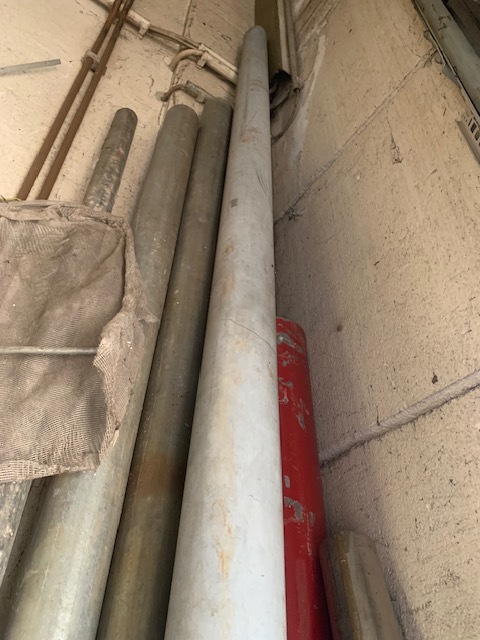 Lampenmast feuerverzinkt, ca 5 mtr lang, D100mm / 80mm oben
