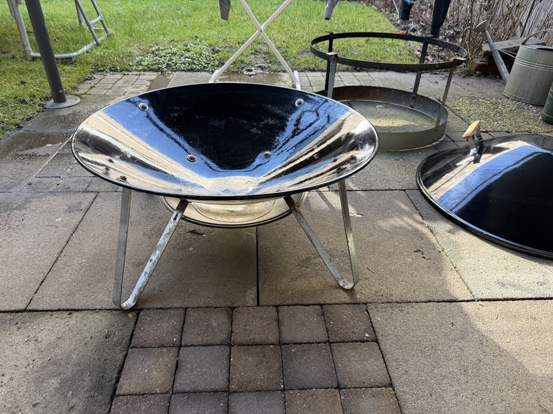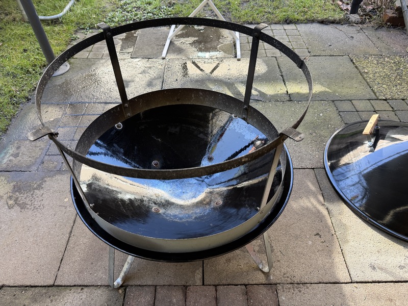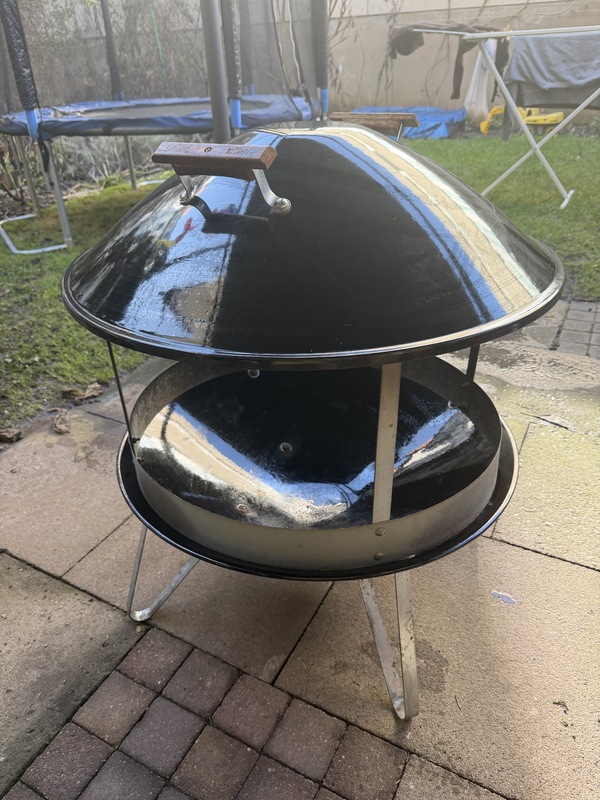 Tolle Feuerschale von Weber mit abnehmbarem Deckel und Erhöhung. Lässt sich mit passendem Grillaufsatz sicher auch als Grill nutzen.