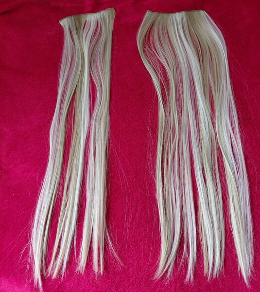 Extensions, neu, blond gesträhnt, mit Kämmchen.