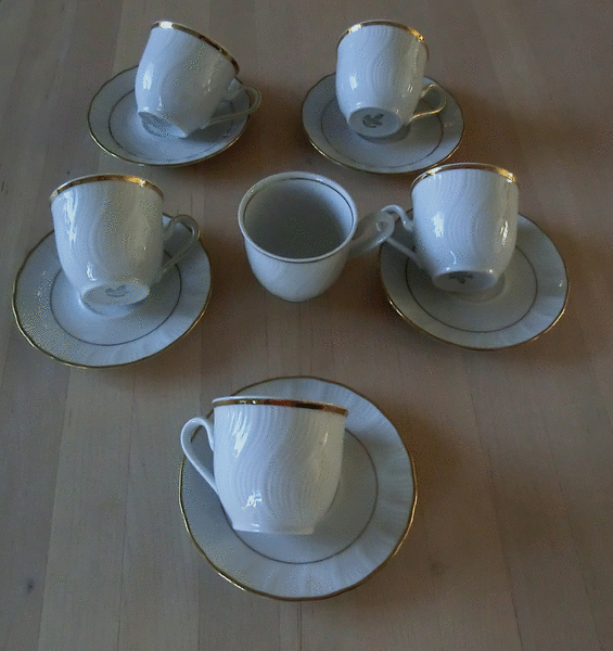 Verkaufe aus Haushaltsauflösung 6 Mokkatassen Espresso Tassen und 5 Untertassen mit Goldrand. - Winterling Kirchenlamitz Bavaria 5 ... siehe Foto