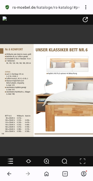 - Bettgestell von r+s Möbel Klassiker Nr. 6, 45 cm hoch, mit Kopf- und Fußteil (im Foto nicht anmontiert). Neupreis ca. 400 €