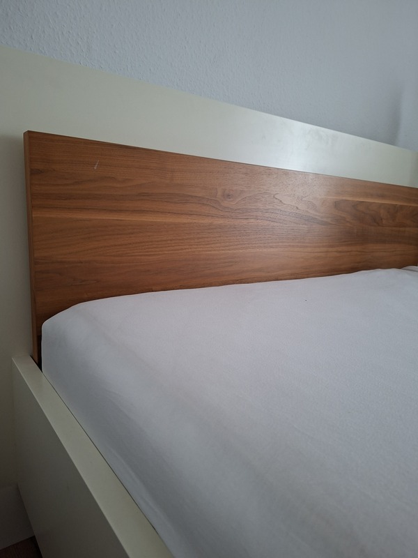 Ich verschenke dieses Bett aus Holz in weiß mit einem Kopfteil aus Holz inkl. Lattenrost und (optional mit Matratze 140x140cm).