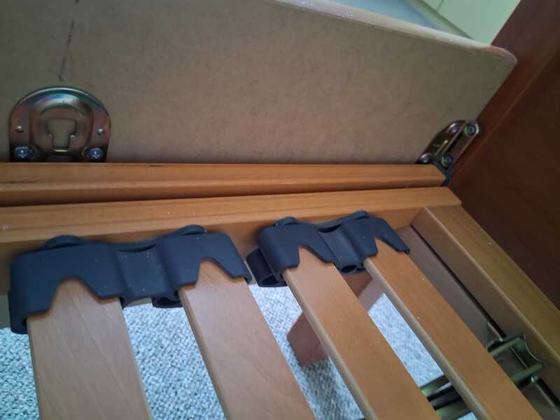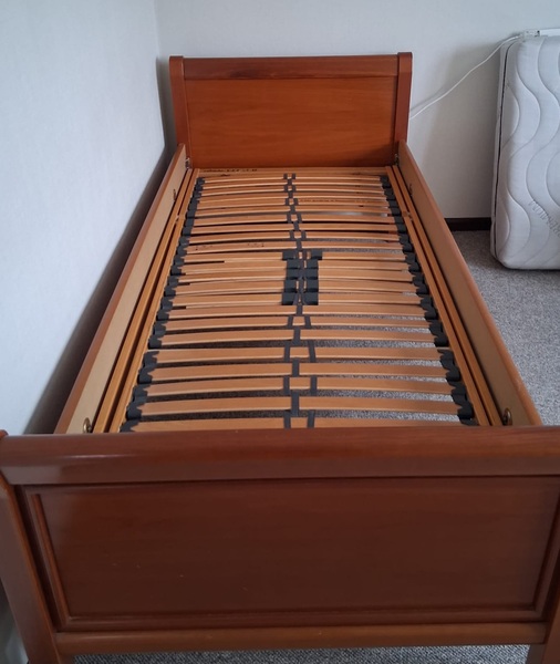Das Bett ist in sehr guten Zustand, einige Kratzer. Der Lattenrost kann im Rahmen auf verschiedenen Höhen eingelegt werden, ebenfalls sind Kopf- und Fussteil des Lattenrosts ebenfalls höhenverstellbar.