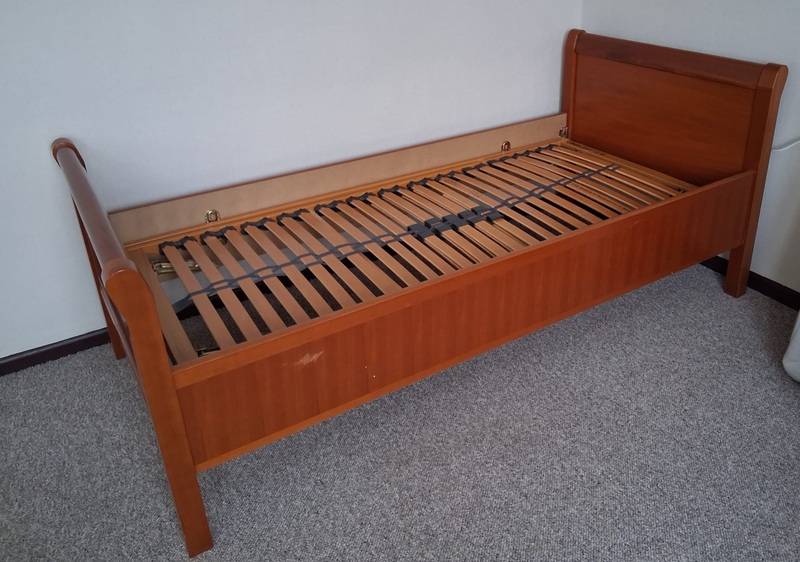Das Bett ist aktuell zusammengebaut und steht im 1. OG, von dort müsste es auseinander gebaut und abtransportiert werden.
