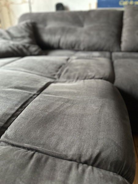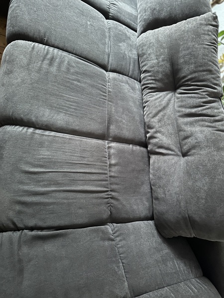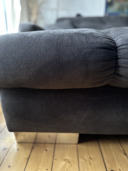 - Die Couch hat eine durchgesessene Stelle an einem Sitzpolster, wie auf den Bildern zu sehen. Ansonsten ist sie noch sehr gut nutzbar und sehr bequem.