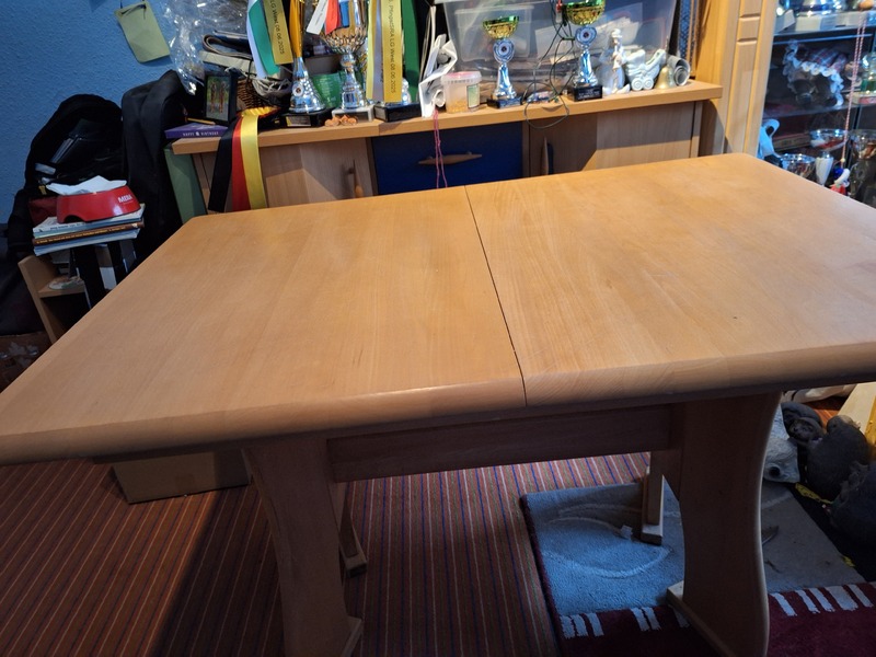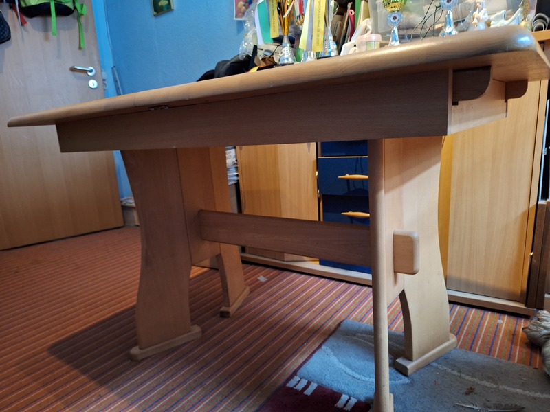 Ich habe einen massive Esstisch aus Buche hell abzugeben. Maße 1.40 x 0.80 plus integrierter Platte zum verlängern