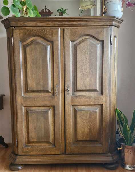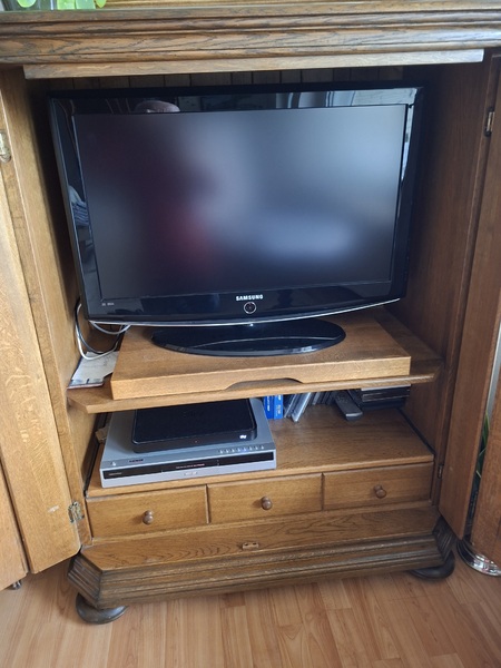 Biete einen Fernsehschrank aus Eiche an, der aus Massivholz ist. Der Schrank ist in einem sehr guten Zustand, keine Beschädigungen oder Abspaltungen am Holz. Das Holz auf dem der Fernseher steht, ist beweglich. Der Verkauf erfolgt ohne Geräte und Deko. Der Schrank kann auch anders genutzt werden.