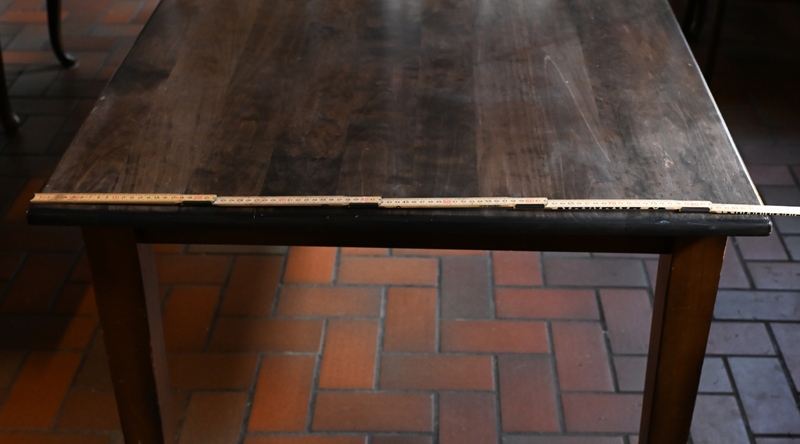 Der Tisch bietet als Tafel ausreichend Platz für 6-12 Stühle.