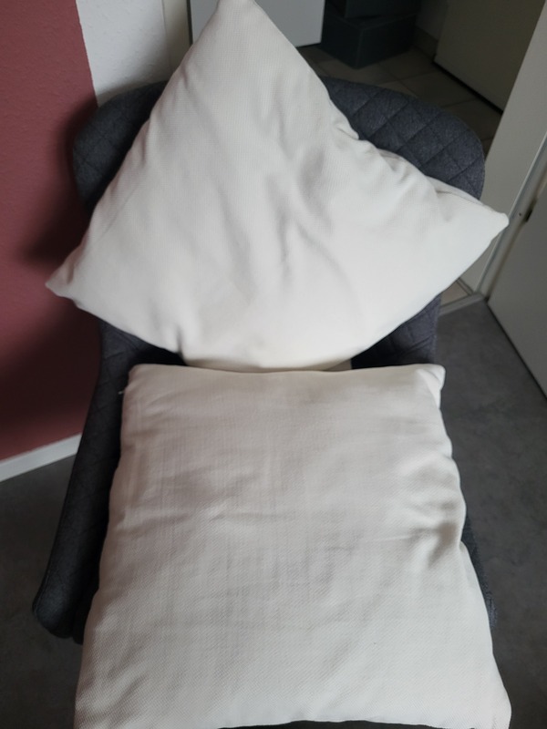 Verkaufe 3 Kissen in rosa/pink, 2x 40x40 cm, 1x 35x35 cm, Bezug waschbar für 12 € VH und 2 Kissen, 40x40 cm in Creme, auch hier ist der Bezug waschbar für 9€ VH.