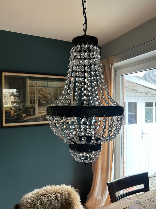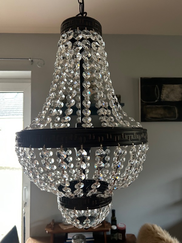 Wir verkaufen diese Lampe: Lindby Jorve Pendelleuchte (Retro, Vintage, Antik) aus transparentem Kristall (5 Leuchtmittel G9) – Deckenleuchte, Esstischlampe, Hängelampe, Wohnzimmerleuchte. Kostet 40€