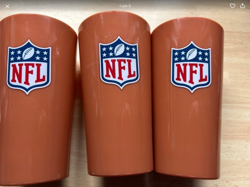 Verkaufe hier drei NFL Plastikbecher in braun mit dem offiziellen Logo.