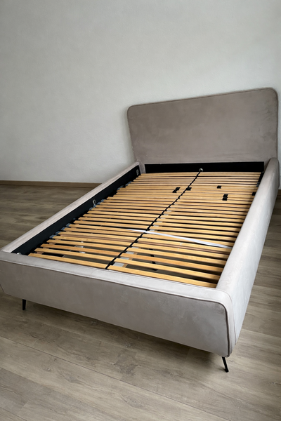 Der Samtbezug ist sehr pflegeleicht und das Bett steht super stabil.