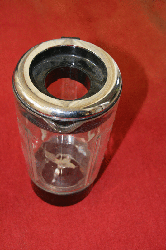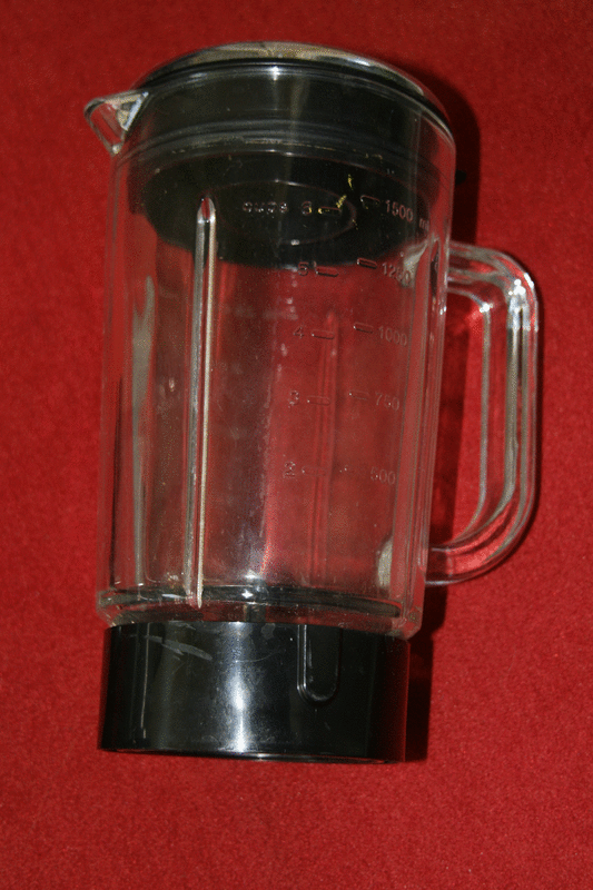 Der Glaskrug ist unbeschädigt, jedoch fehlt der Deckel.Der Motor funktioniert im Puls-Modus und auch in dem Modus zur Geschwindigkeitseinstellung.
