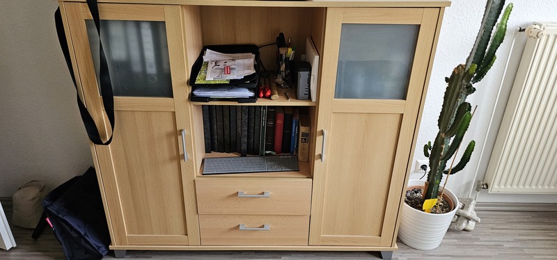 Die Vitrine steht in einen Nichtraucher Zimmer. Lang 130 Tief 38 Hoch 120 Privatverkauf, keine Gewährleistung oder Rücknahme. Preis 25 Euro V.B