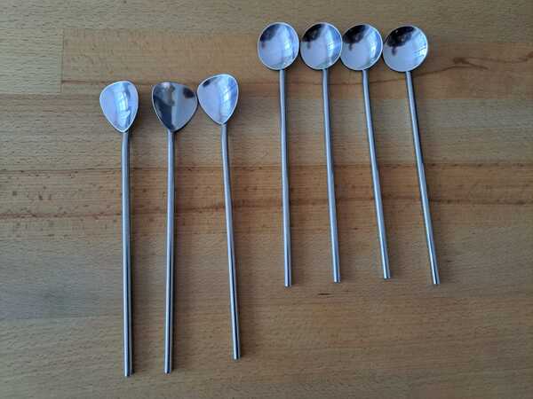 Trinklöffel, der Stiel der Löffel funktioniert gleichzeitig als Trinkhalm, 7 Stück vorhanden, je 2,00 Euro VB, zusammen 10,00 Euro. Bei dieser Anzeige handelt es sich um einen privaten und keinen gewerblichen Verkauf.