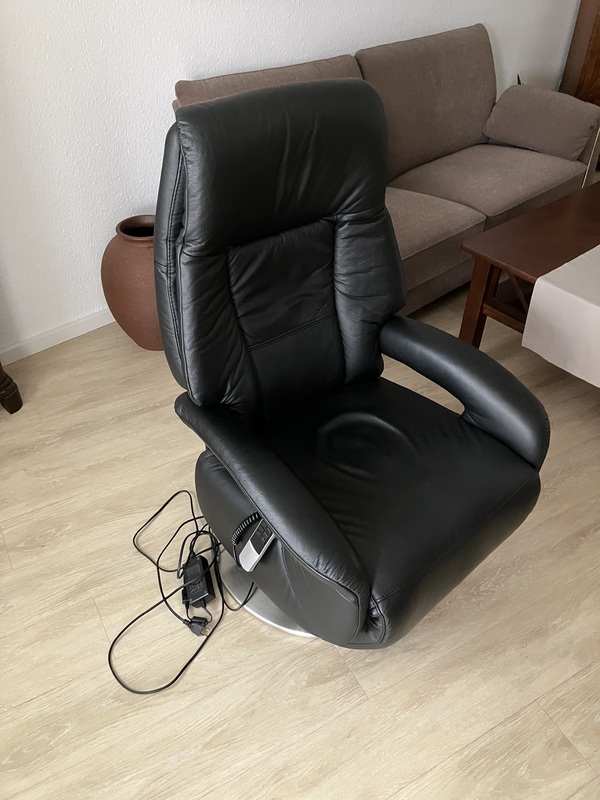 TV-Sessel, drehbar, elektr. verstellbar, schwarzes Leder, guter Zustand.