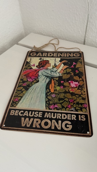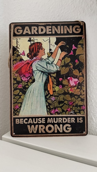 - Vintage Blechschild Gardening bc. Murder Is Wrong