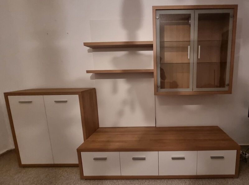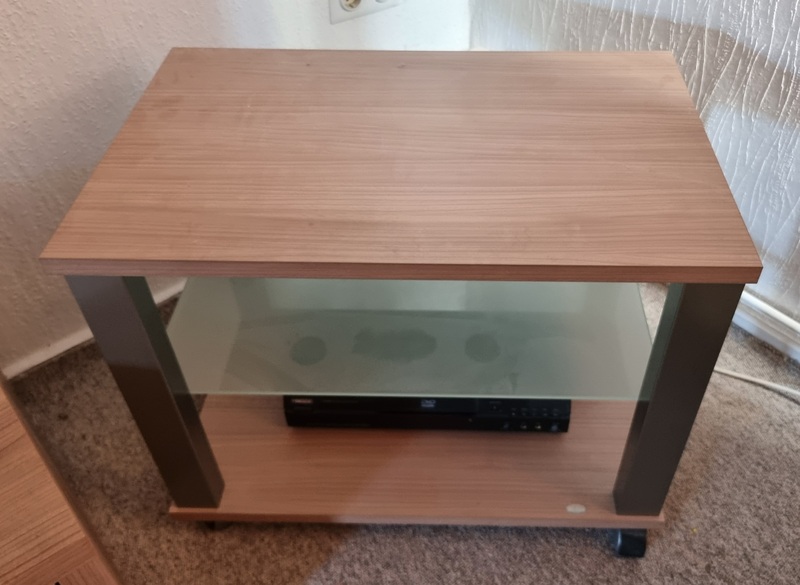 Bei Bedarf kann auch ein kompakter, farblich passender TV-Tisch erworben werden. Gesamtpreis mit Wohnwand 300 Euro.