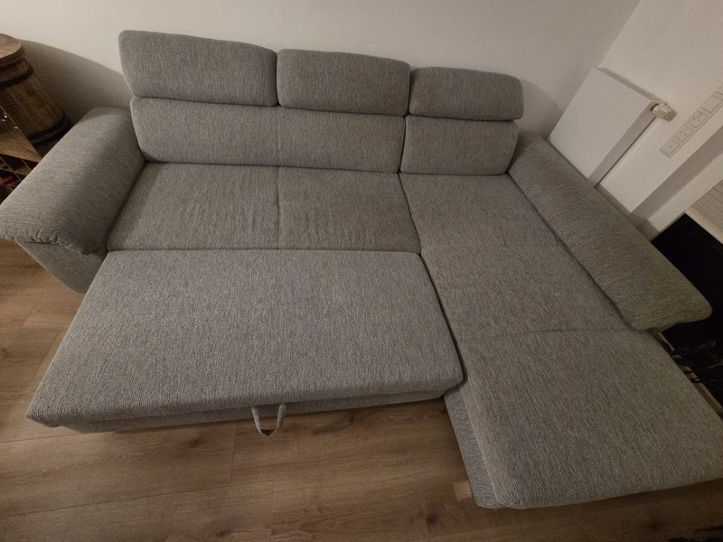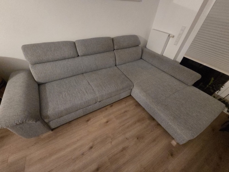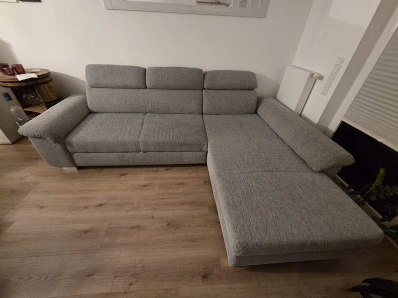 Gemütliches Sofa/ Schlafsofa in graumeliert mit chromfarbenen Füssen aus Platzgründen abzugeben. Die Kopfstützen sind klappbar