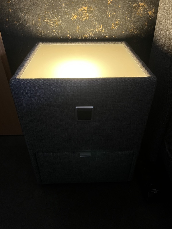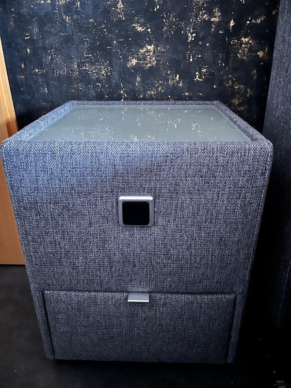 Verkaufe zwei Nachttische . Diese haben einen Glasausschnitt mit intrigiertem Licht und es befindet sich eine Schublade in dem Nachttisch . Er ist aus grauem Webstoff und neuwertig . Nichtraucher und keine Tiere im Haushalt . Abholung in der Gartenstadt Vahr .