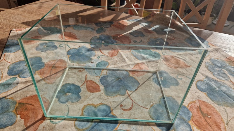 Kleines Terrarium aus Glas, 30 x 20 x20 cm, ohne Deckel, gebraucht für 10 Euro abzugeben.