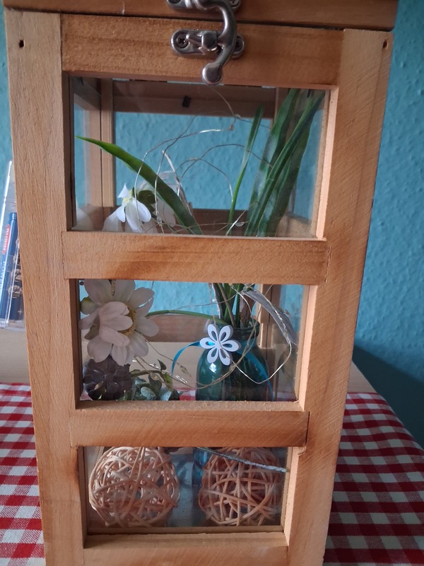 Verkaufe Holzlaterne mit Deko und Lich für 30.00 Euro