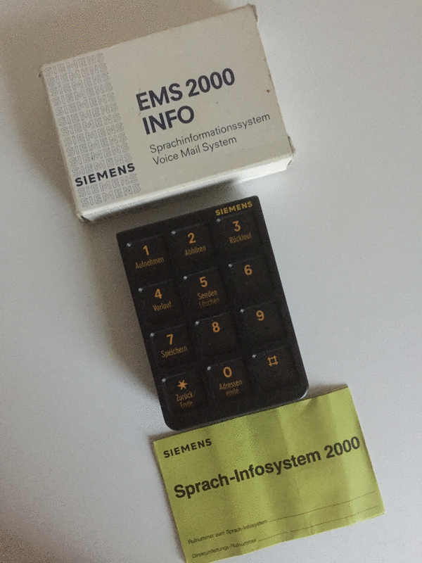 Bediengerät (S30122-U128-X), mit Bedienungsanleitung in Originalverpackung, für das Sprachinformationssystem Voice Mail System. Das Kommunikationssystem EMS hat Siemens in den 80er Jahren weltweit installiert. Ein tolles Geschenk für einen Siemens/Telefon-Fan bzw. gehören es zur Dekoration in eine Ausstellung oder als Hingucker in Ihre Sammlung, sehr gepflegt, sehr guter Zustand, Tierfreier Nichtraucherhaushalt! Privatverkauf, siehe Fotos, jetzt nur 12€, Versand (€ 3,00) bei Kostenübernahme möglich