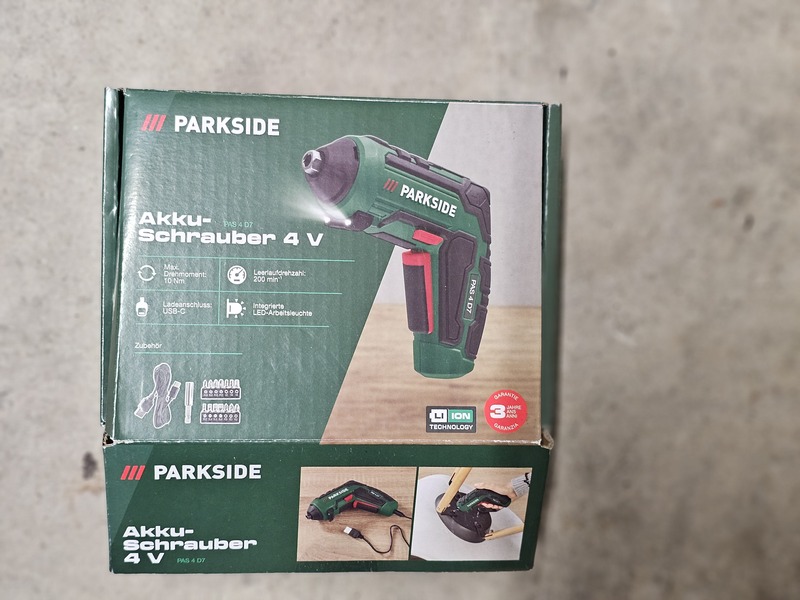 Akku Schrauber 4 V, Parkside, Ladegerät. Aufsätze, Funktionstüchtig. Preis: 15 Euro V.B.