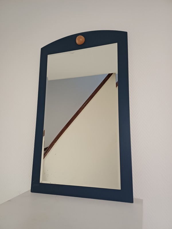 - Vintage blaue Holzrahmen Spiegel 70-er j.