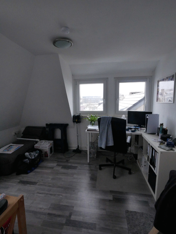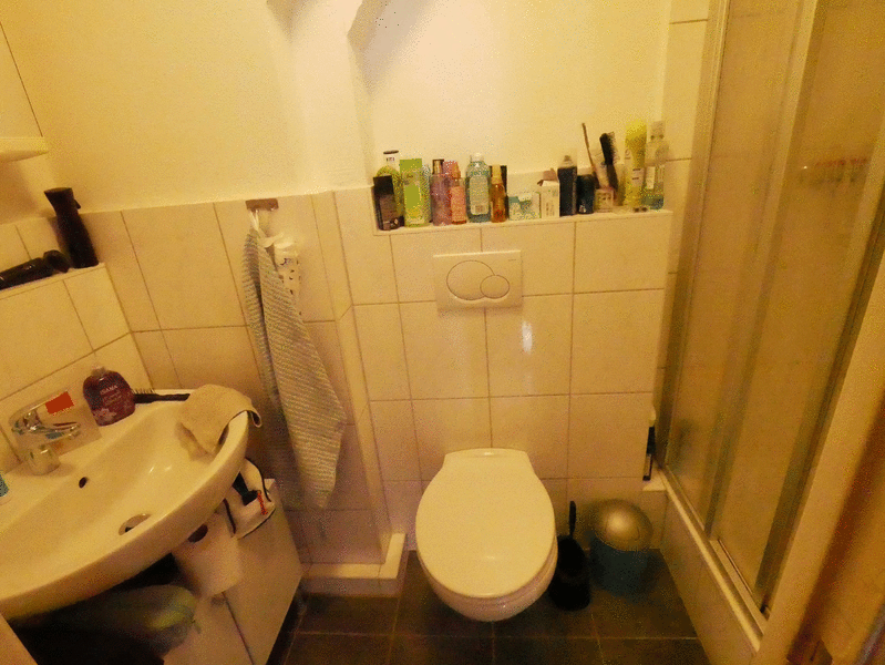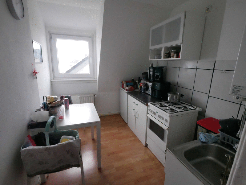 Die Wohnung liegt in einer ruhigen Seitenstraße im Dachgeschoß eines Mehrfamilienhauses mit 7 Wohneinheiten. Sie verfügt über helle 1,5 Zimmer, die sich ideal als getrennter Wohn- und Schlafbereich nutzen lassen. In der Küche ist ein Gasherd mit Backofen sowie ein Spülbecken vorhanden. Die Wohnung verfügt ferner über ein modernes Duschbad und einen kleinen Abstellbereich im Flur mit Waschmaschinenanschluss. Außerdem gehört ein Abstellraum im Keller zur Wohnung.