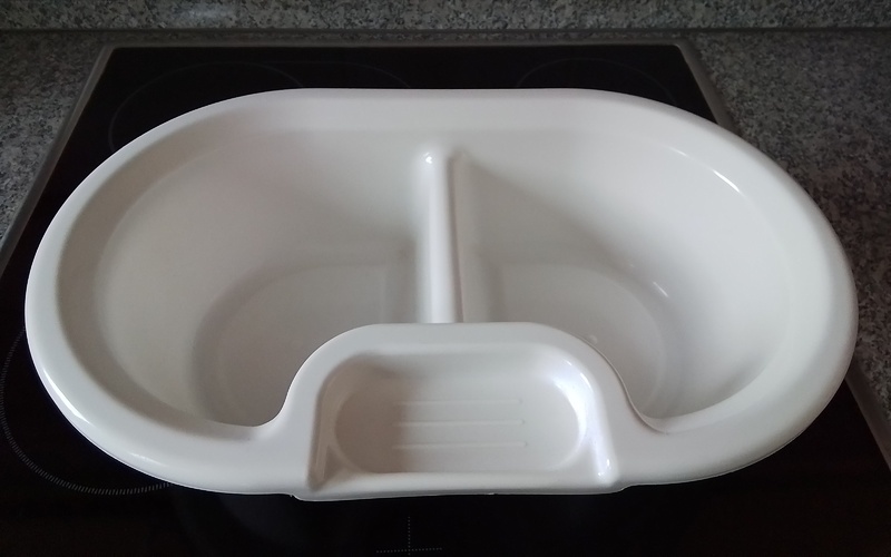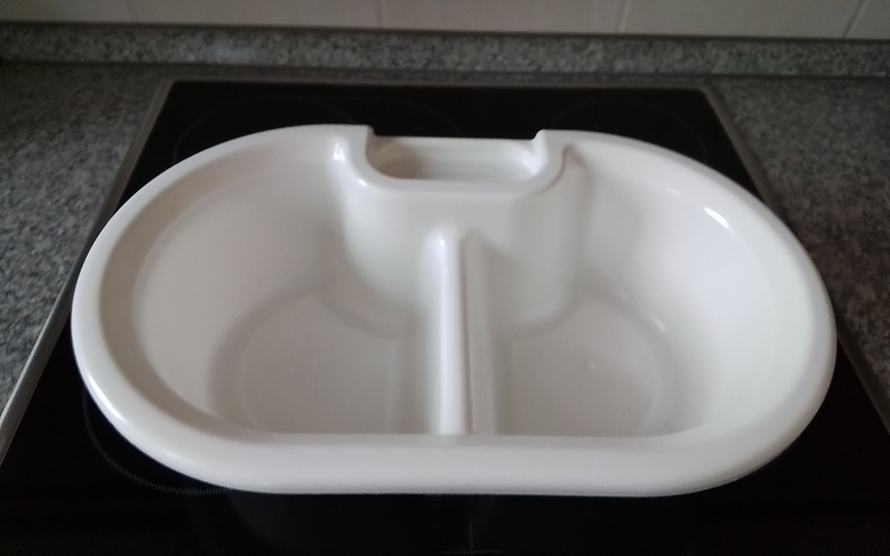 Ich verkaufe eine weiße Babywaschschale für3€.