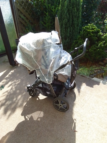 Reichlich Ausstattung wie: Sonnenschirm, Regencape und Insektenschutz