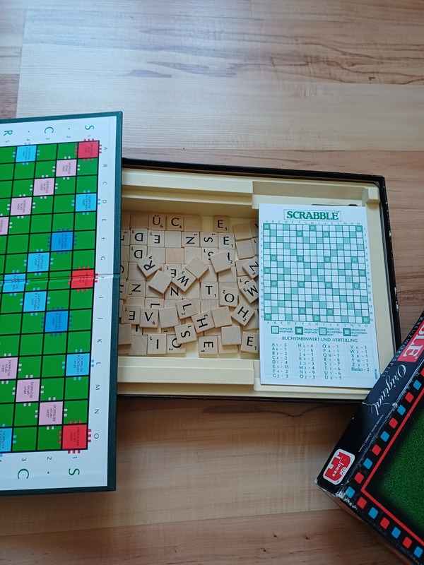 Original und klassischer Scrabble Spiel mit Holzsteinen.