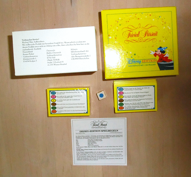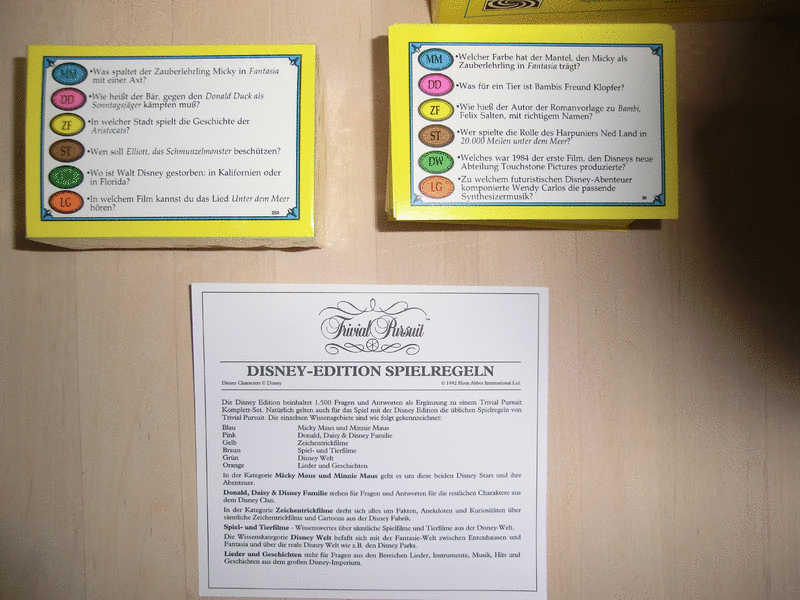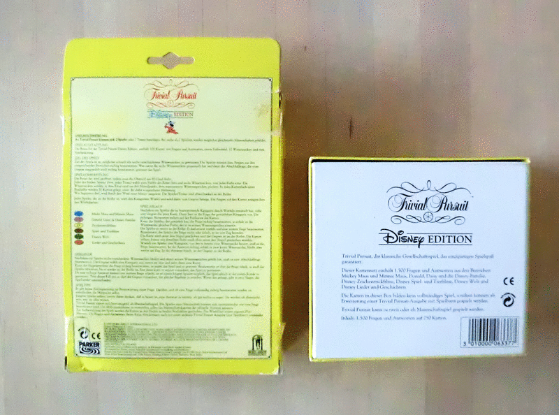 Verkaufe das unbenutzte, aber ältere -Trivial Pursuit Disney Edition von 1990 - und den Kartensatz mit 1500 Fragen 1992.