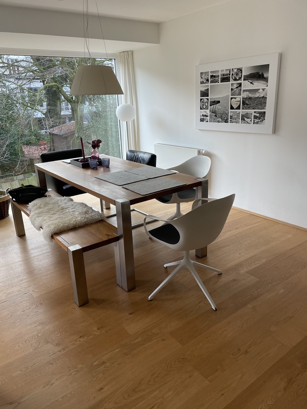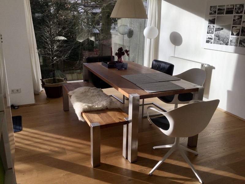 Ich biete meinen Edelstahl Eiche massiv Esstisch zum Verkauf an. Der Tisch wurde vom Tischler für uns als Einzelstück angefertigt. Die Maße 190 cm lang mal 90 cm breit. Die Höhe beträgt 73 cm. Die dazu passende Sitzbank ist 140 cm lang