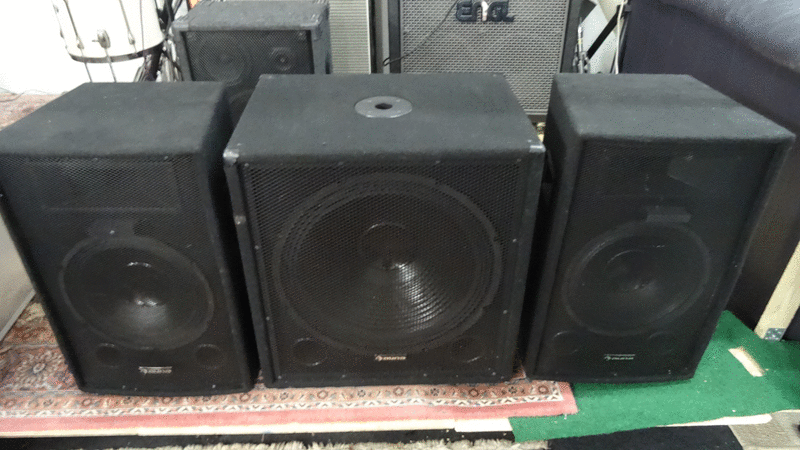 IM SET: Das mobile Dreigespann besteht aus einem aktiven 46cm (18") Subwoofer mit 500 Watt Ausgangsleistung/1000 Watt Spitzenleistung sowie zwei passiven 30 cm (12") Lautsprechern mit 300 Watt Ausgangsleistung/600 Watt Spitzenleistung
