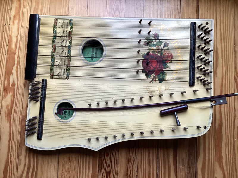 Alte, historische Zitter mit floraler Dekoration
