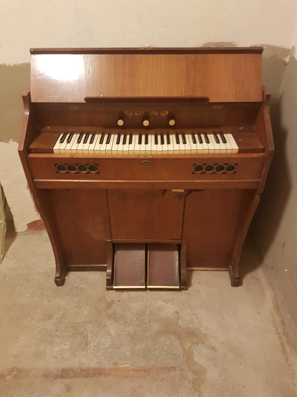 Harmonium von Liebig abzugeben. Das Instrument stand längere Zeit im Keller und weist Gebrauchsspuren auf, besonders auf dem Deckel. Aktuell ist es nicht spielbar – möglicherweise liegt es am Blasebalg, wurde jedoch nicht geöffnet oder überprüft.