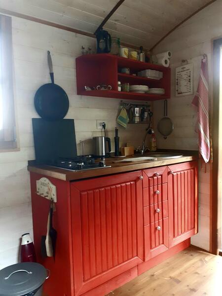 Die Küche ist mit 2-flammigen Gasherd, Kühlschrank, Spüle, Kaffeebereiter French Press, Bialetti-Espressokocher, Toaster,Töpfen, Pfannen und Geschirr mit allem ausgestattet, was man für einen schönen Urlaub so braucht. Alles ist sauber und in ausreichender Anzahl vorhanden.