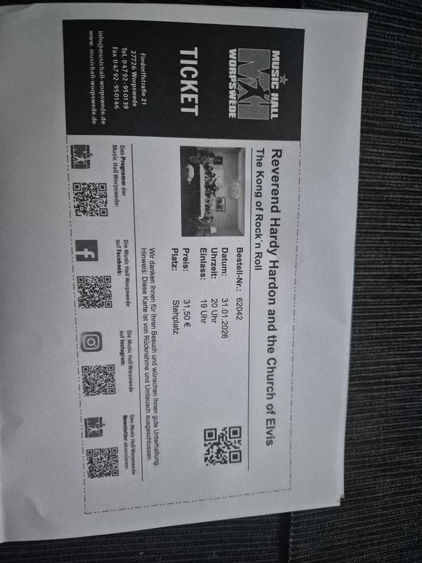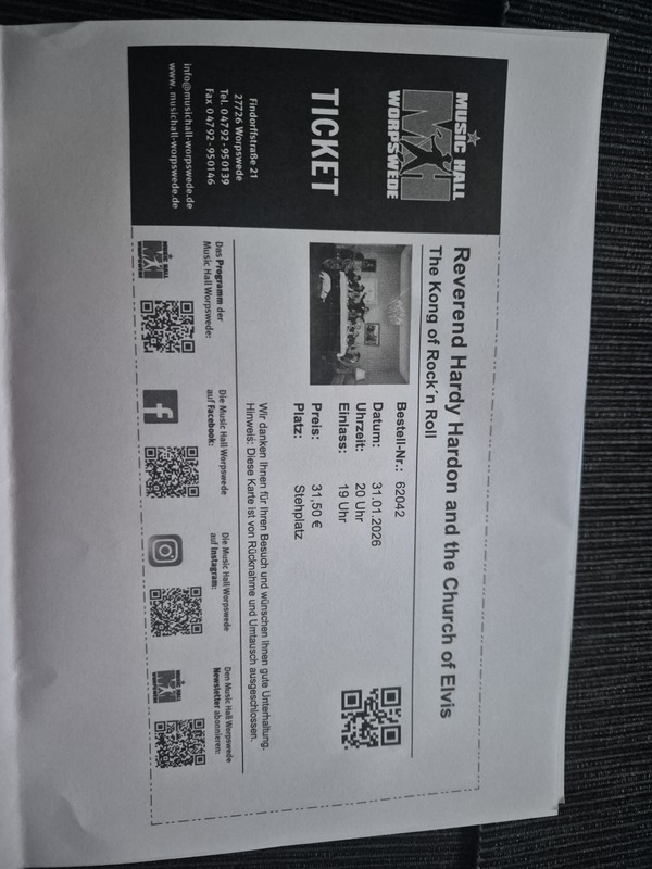 Wir müssen leider krankheitsbedingt 2 Karten für die Musik Hall abgeben beide Karten zusammen für 35 Euro tel.01724372328