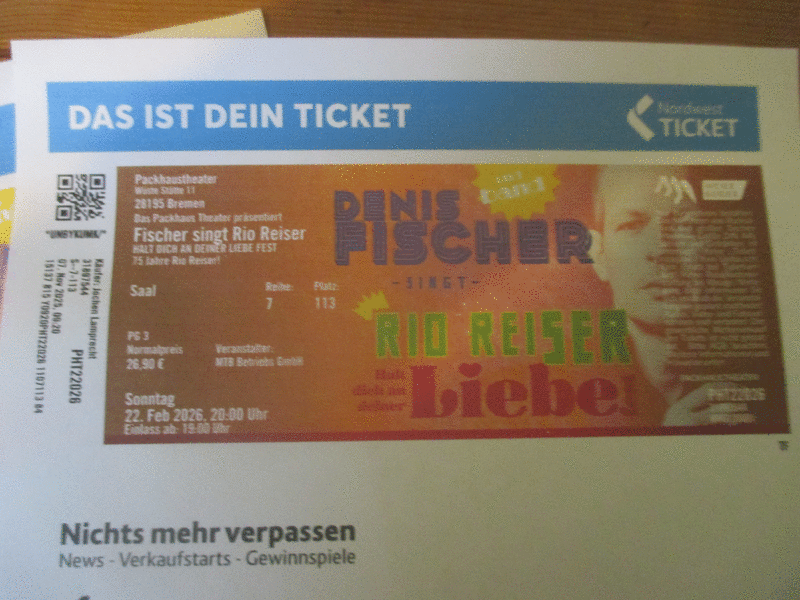 Sonntag, den 22.02.26 um 20 Uhr im Packhaustheater. Reihe 7, Platz 113 und 114. Beide Karten zusammen zum ursprünglichen Preis von 53,80 €.