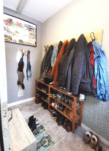 Wir haben unseren eigener Hauseingang mit Garderobenflur, einen Parkplatz, Fahrradkeller und großem Garten.