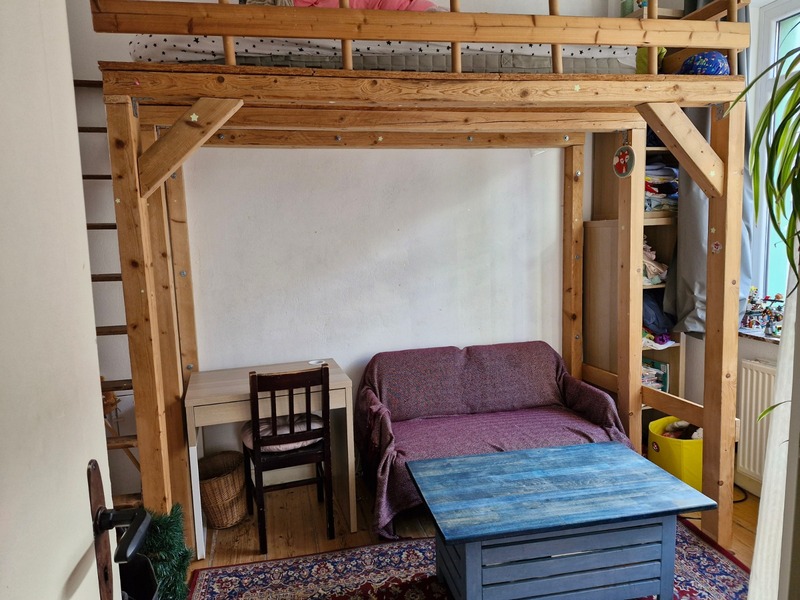 Das Zimmer ist 15 qm groß und befindet sich im 1. Stock.Im 1. OG gibt es außerdem ein kleines Bad mit Dusche und WC. Küche und weiteres Bad werden gemeinsam genutzt. Die Miete beträgt 110€ für eine Woche (1.-8.4.26) und beinhaltet alle Nebenkosten, also Wasser, Gas, Strom sowie Internet.