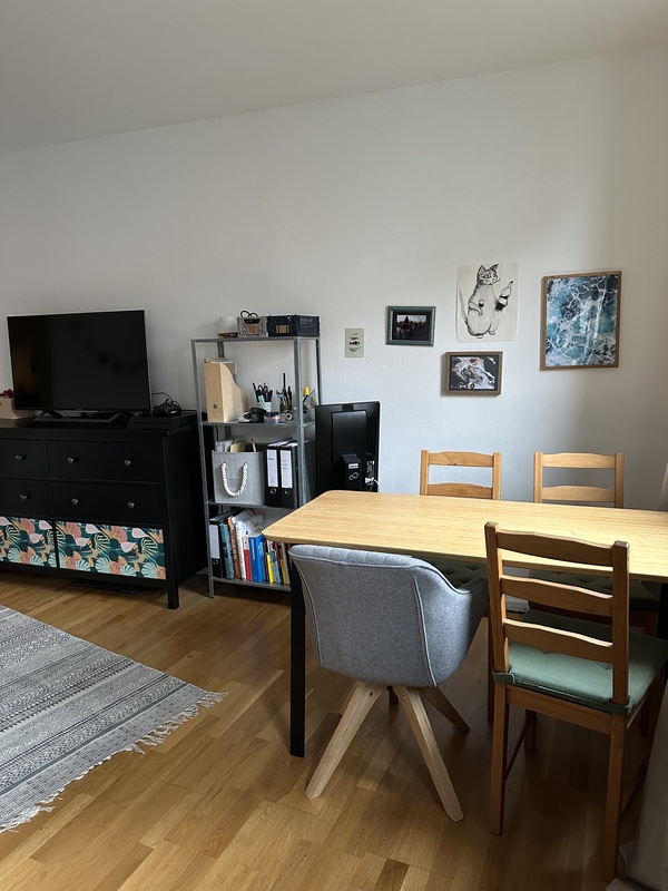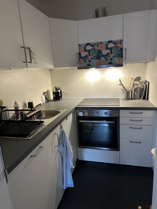 29qm, helles Wohn-/Schlafzimmer, Kochnische, Flur mit Wandschrank, Duschbad, Kellerraum, kein Balkon, 320,00 Euro Kaltmiete zzgl. 130,00 Euro Nebenkosten, 3 Monatskaltmieten Deponat, zum 1.6.26 von privat.