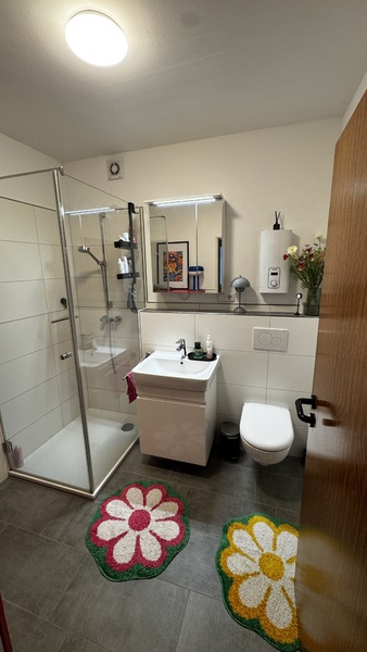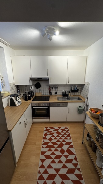 Die Wohnung verfügt über eine Einbauküche inklusive Kühlschrank-Gefrierkombination + Geschirrspüler sowie ein modernes Badezimmer, das vor drei Jahren vollständig saniert wurde. Ein besonderes Highlight ist die großzügige Terrasse, die den Wohnraum ideal nach außen erweitert. Zur Wohnung gehören außerdem ein eigener abschließbarer Kellerraum, eine Garage sowie eine Fahrradgarage. Gemeinschaftswaschmaschine und Trockner stehen zur Verfügung, alternativ gibt es einen eigenen Waschmaschinenanschluss im Bad. Ausreichend Parkplätze sind vorhanden.